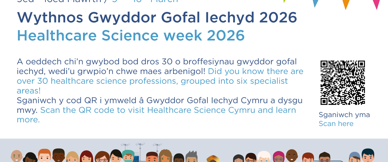 Mae Wythnos Gwyddor Gofal Iechyd 2026 yn gyfle i gydnabod y cyfraniad hanfodol y mae gweithwyr proffesiynol gwyddor gofal iechyd yn ei wneud i ofal cleifion, gwella gwasanaethau ac arloesi ar draws GIG Cymru.