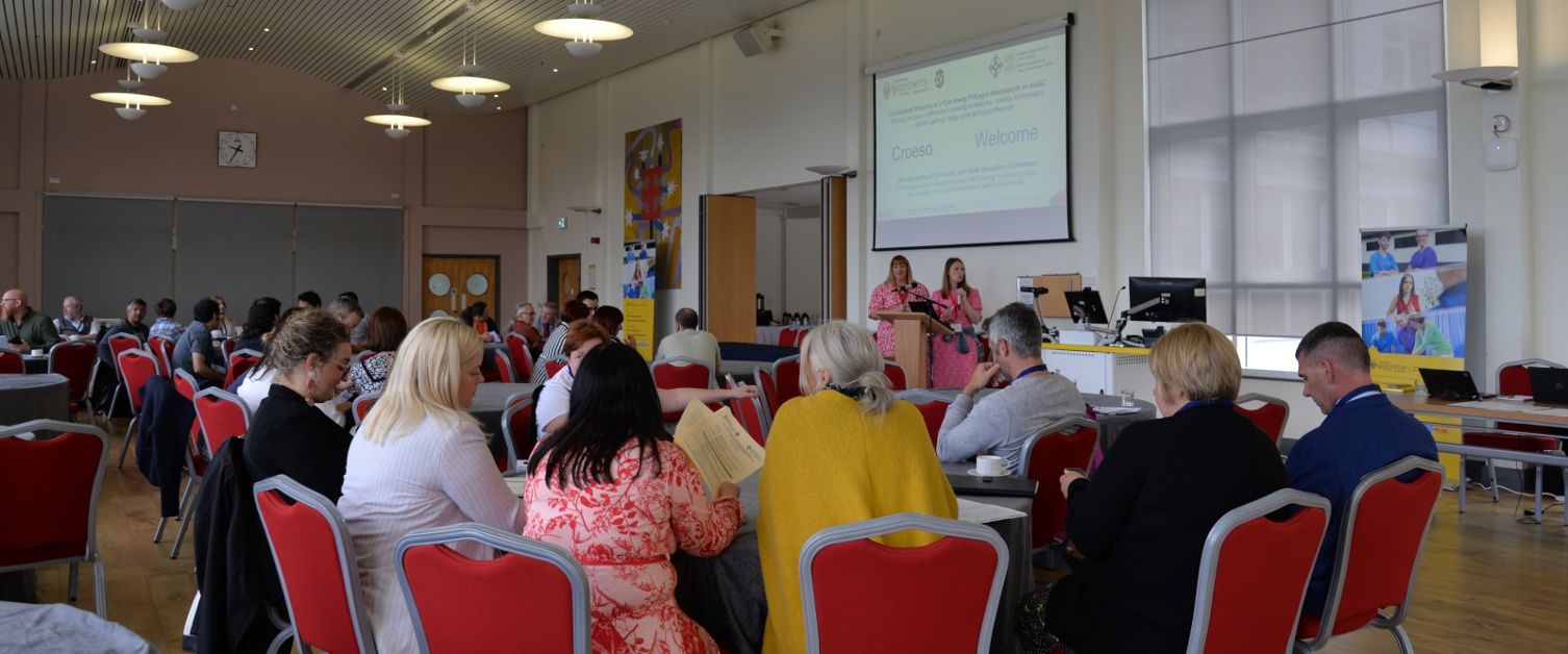 Daeth dros 200 o weithwyr gofal iechyd proffesiynol, addysgwyr a myfyrwyr o bob rhan o Gymru a thu hwnt ynghyd ar gyfer y digwyddiad undydd, a drefnwyd ar y cyd gan Ganolfan Addysg Gofal Iechyd Prifysgol Aberystwyth ac Addysg a Gwella Iechyd Cymru (AaGIC).