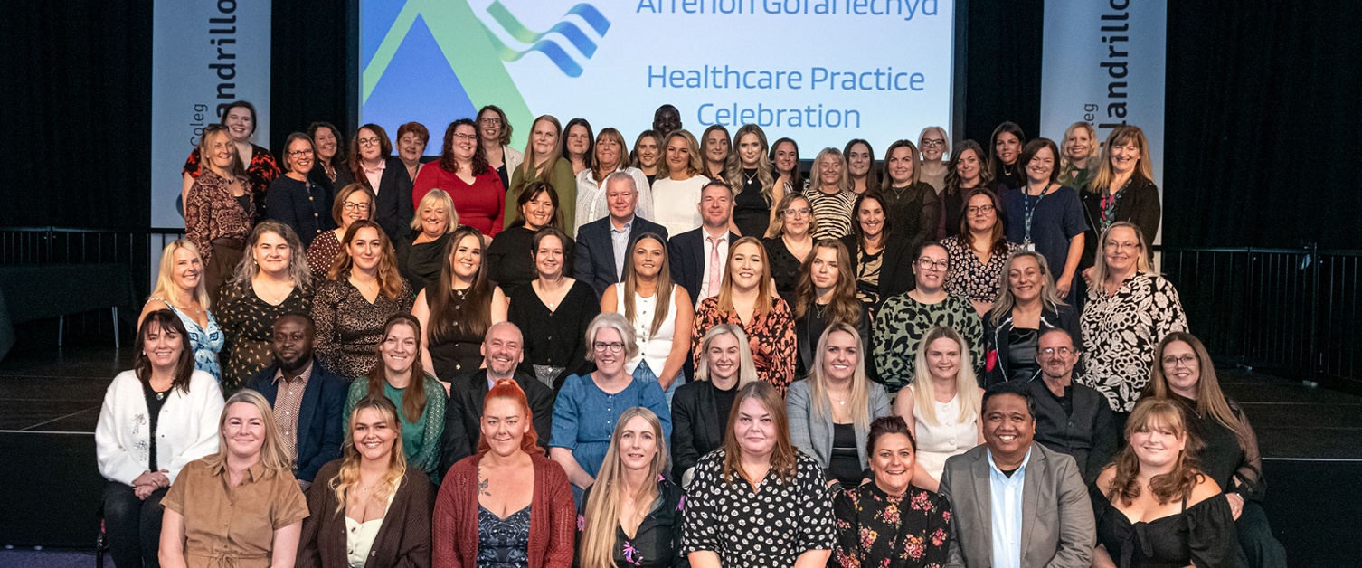 Canmolodd y digwyddiad yn Venue Cymru y myfyrwyr Addysg Uwch Ymarfer Gofal Iechyd am gwblhau Tystysgrif Addysg Uwch Lefel 4 mewn Ymarfer Gofal Iechyd.