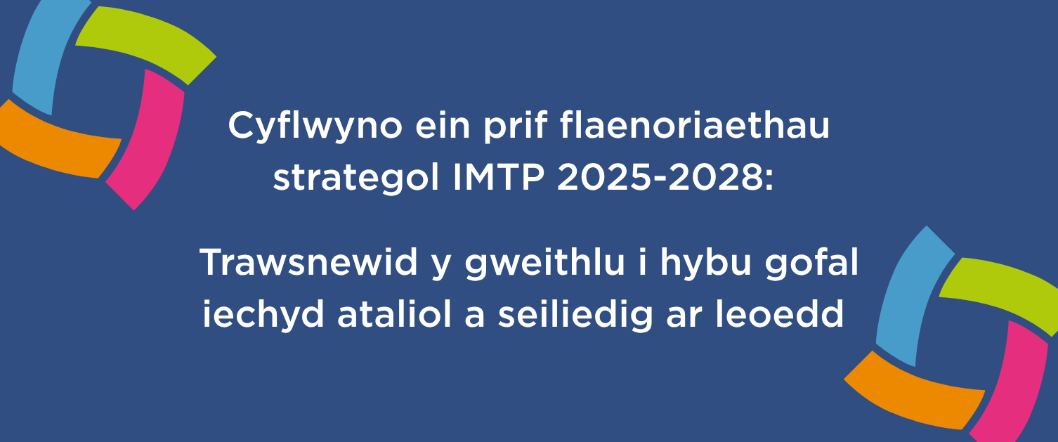 Am ragor o wybodaeth gweler ein Cynllun Tymor Canolig Integredig (IMTP) neu gysylltwch â heiw@wales.nhs.uk.