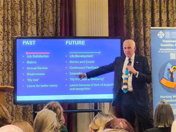 Roedd y gynhadledd yn cynnwys rhai siaradwyr anhygoel a ddaeth â themâu ein Cynllun Gweithlu Nyrsio Strategol (SNWP) yn fyw.